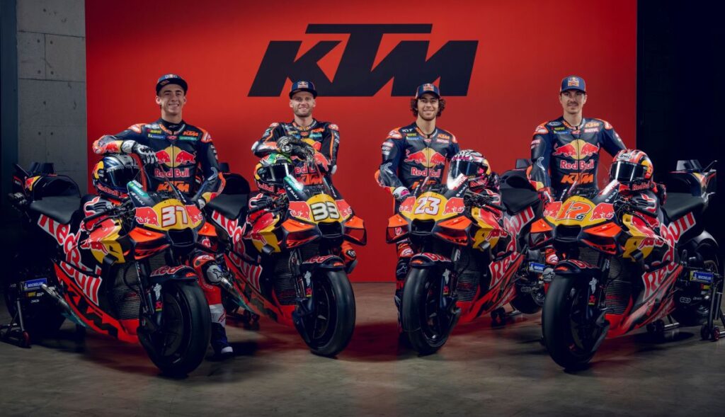 La casa matriz, KTM, fundada en 1934 y conocida por su filosofía “Ready to Race”, ha desarrollado la RC16, una moto de MotoGP con motor V4 de 1000 cc pensada para competir al máximo nivel.